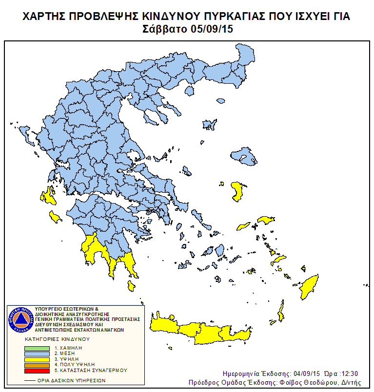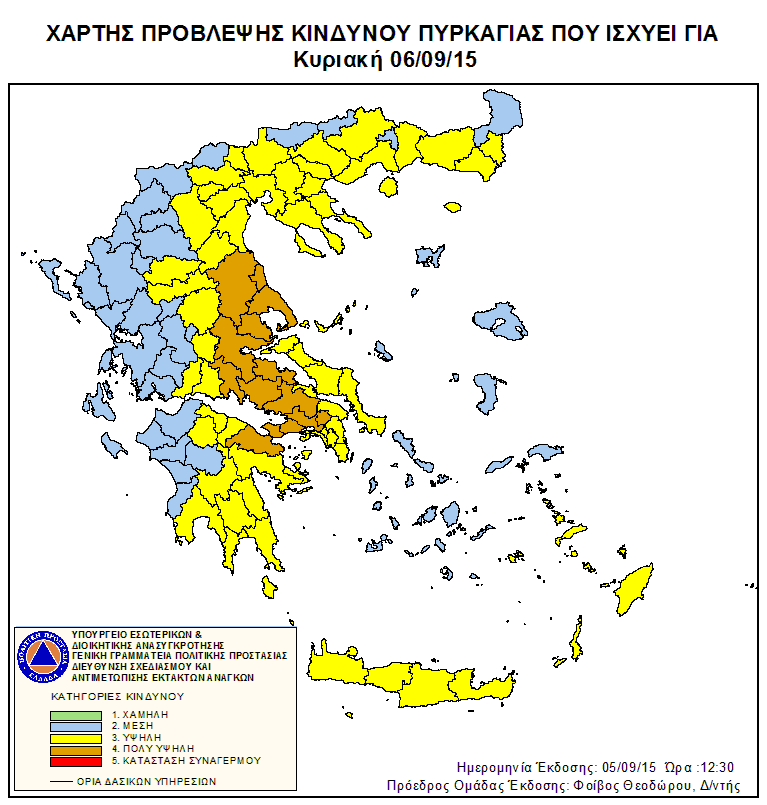 Ημερήσιος Χάρτης Πρόβλεψης Κινδύνου Πυρκαγιάς 05/09/2015