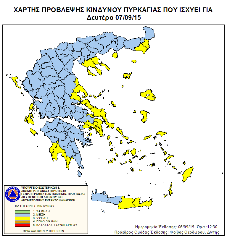 Ημερήσιος Χάρτης Πρόβλεψης Κινδύνου Πυρκαγιάς 07/09/2015