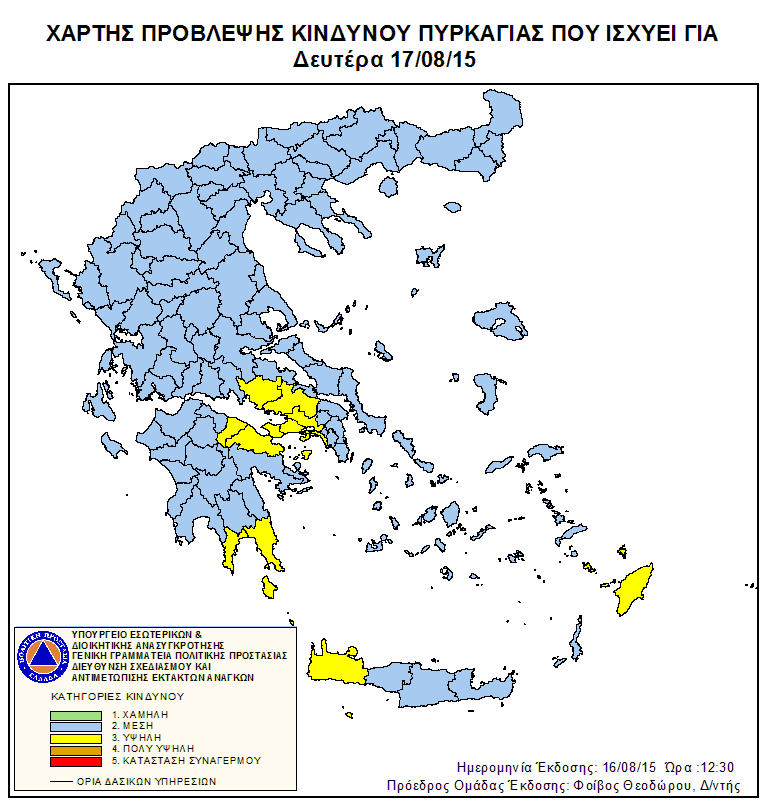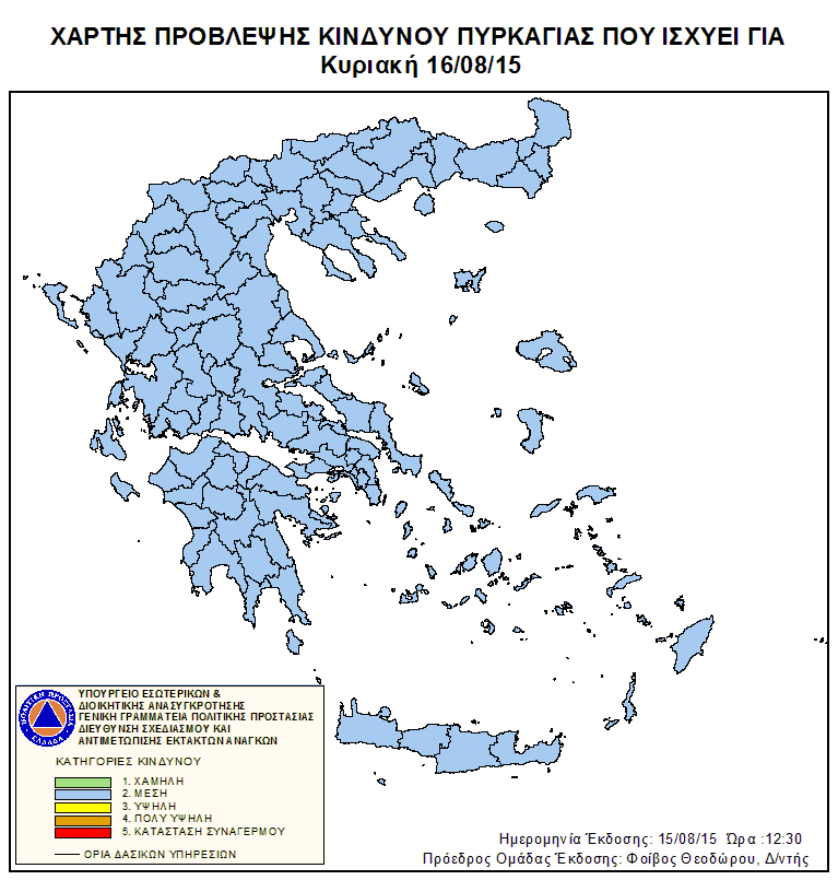 Ημερήσιος Χάρτης Πρόβλεψης Κινδύνου Πυρκαγιάς 16/08/2015