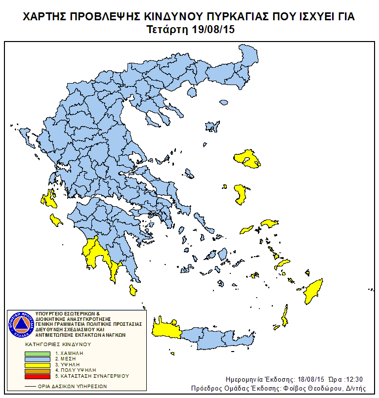 Ημερήσιος Χάρτης Πρόβλεψης Κινδύνου Πυρκαγιάς 19/08/2015