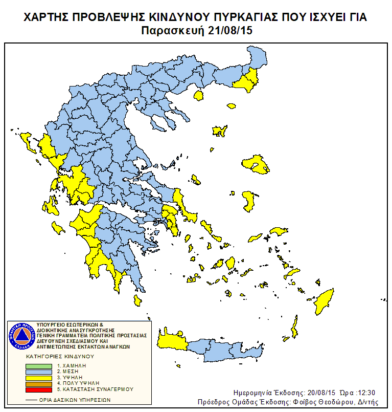 Ημερήσιος Χάρτης Πρόβλεψης Κινδύνου Πυρκαγιάς 20/08/2015