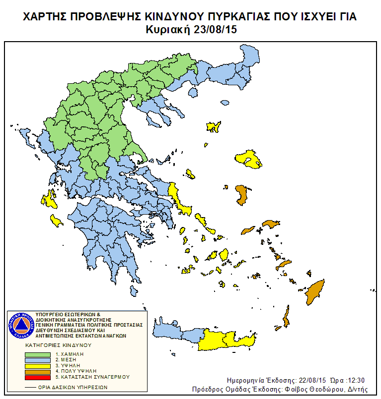 Ημερήσιος Χάρτης Πρόβλεψης Κινδύνου Πυρκαγιάς 22/08/2015