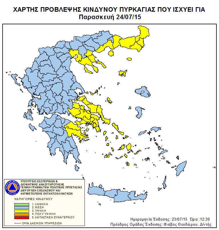 Ημερήσιος Χάρτης Πρόβλεψης Κινδύνου Πυρκαγιάς 24/07/2015