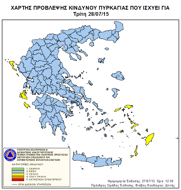 Ημερήσιος Χάρτης Πρόβλεψης Κινδύνου Πυρκαγιάς 27/07/2015