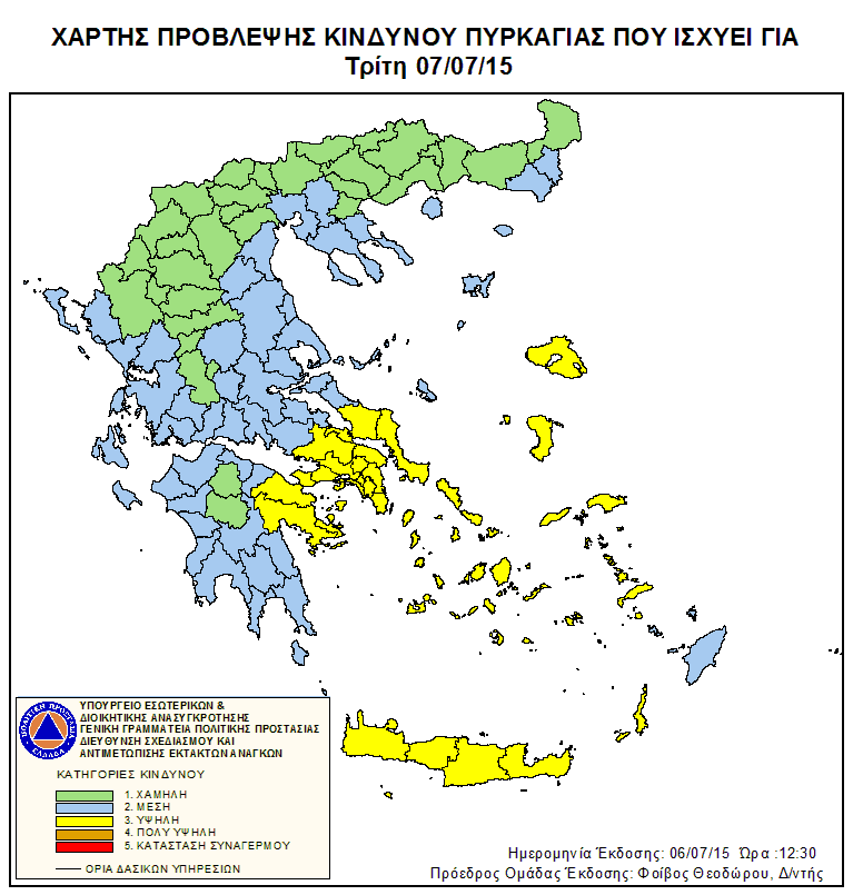 Ημερήσιος Χάρτης Πρόβλεψης Κινδύνου Πυρκαγιάς 07/07/2015