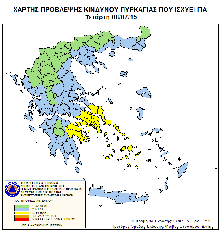 Ημερήσιος Χάρτης Πρόβλεψης Κινδύνου Πυρκαγιάς 08/07/2015