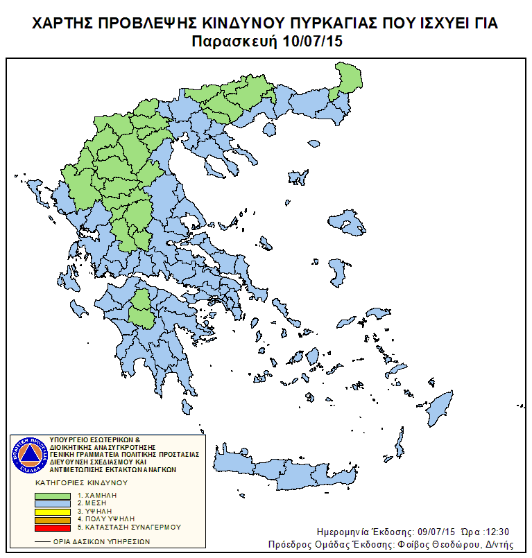 Ημερήσιος Χάρτης Πρόβλεψης Κινδύνου Πυρκαγιάς 09/07/2015