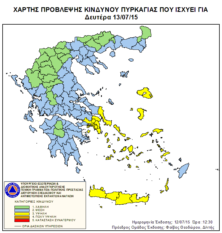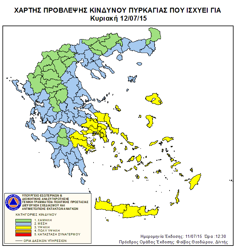 Ημερήσιος Χάρτης Πρόβλεψης Κινδύνου Πυρκαγιάς 12/07/2015