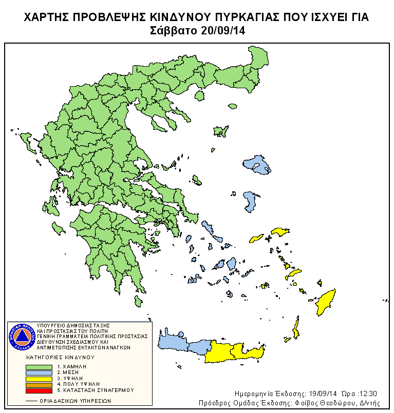 Ημερήσιος Χάρτης Πρόβλεψης Κινδύνου Πυρκαγιάς 20/09/2014