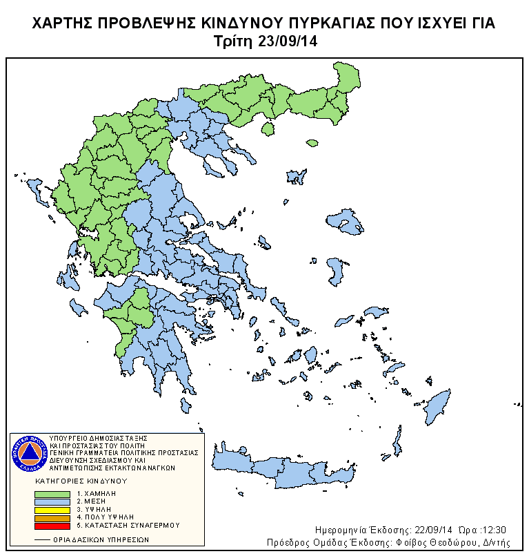 Ημερήσιος Χάρτης Πρόβλεψης Κινδύνου Πυρκαγιάς 22/09/2014