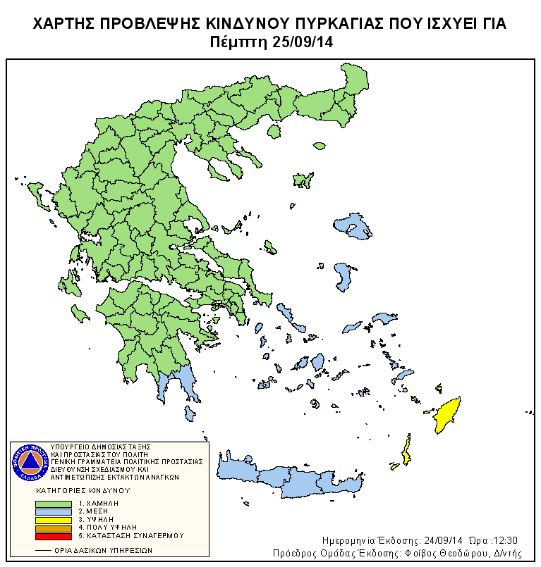 Ημερήσιος Χάρτης Πρόβλεψης Κινδύνου Πυρκαγιάς 25/09/2014