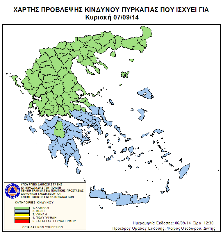 Ημερήσιος Χάρτης Πρόβλεψης Κινδύνου Πυρκαγιάς 06/09/2014