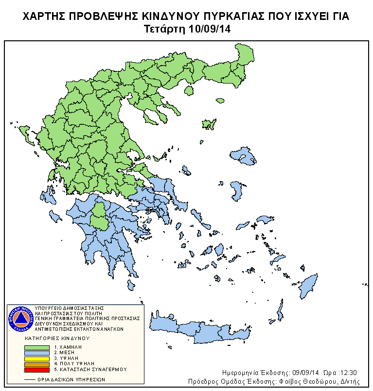Ημερήσιος Χάρτης Πρόβλεψης Κινδύνου Πυρκαγιάς 10/09/2014