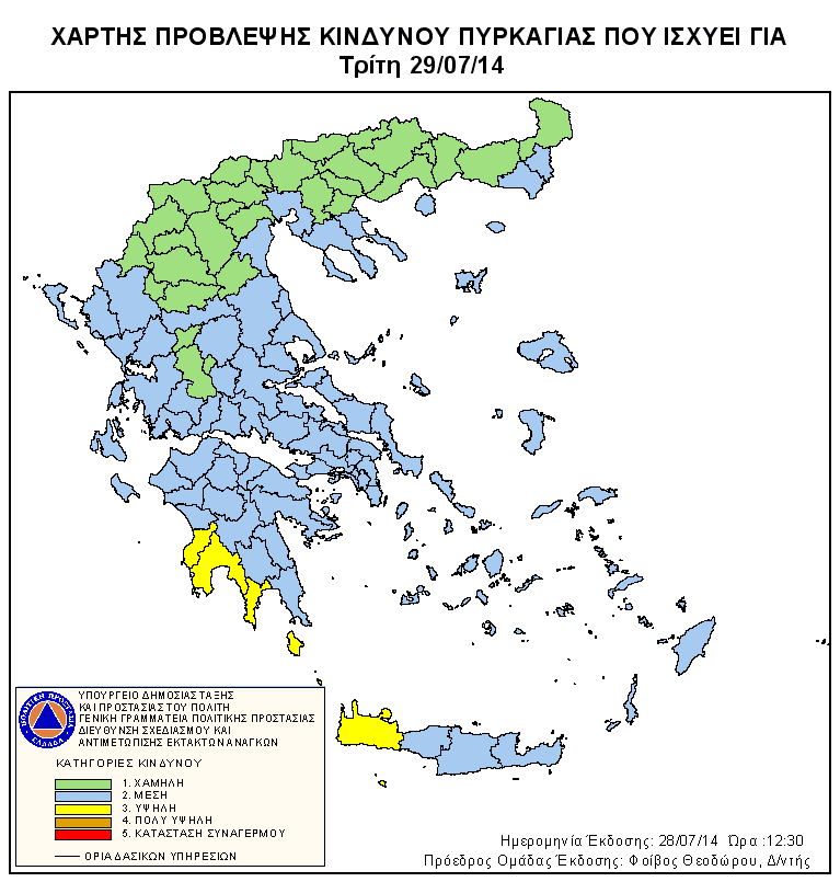 Ημερήσιος Χάρτης Πρόβλεψης Κινδύνου Πυρκαγιάς 29/07/2014