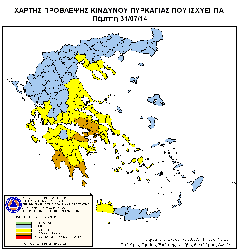 Ημερήσιος Χάρτης Πρόβλεψης Κινδύνου Πυρκαγιάς 30/07/2014