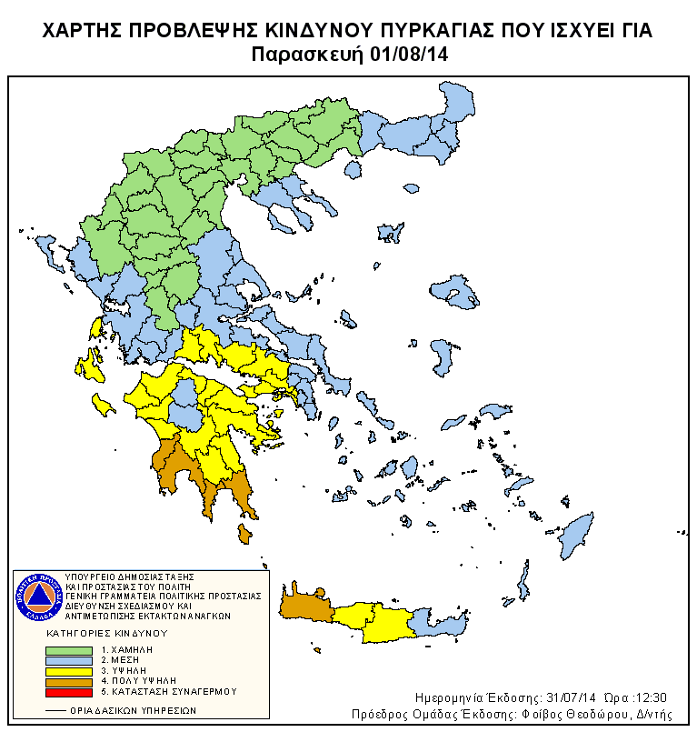 Ημερήσιος Χάρτης Πρόβλεψης Κινδύνου Πυρκαγιάς 01/08/2014