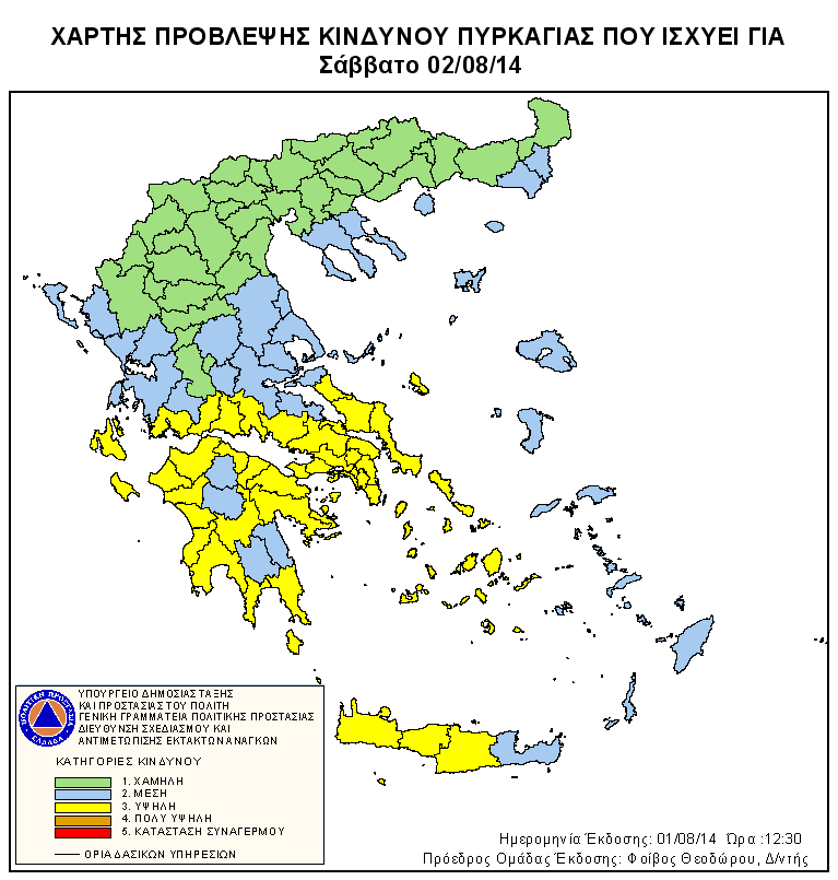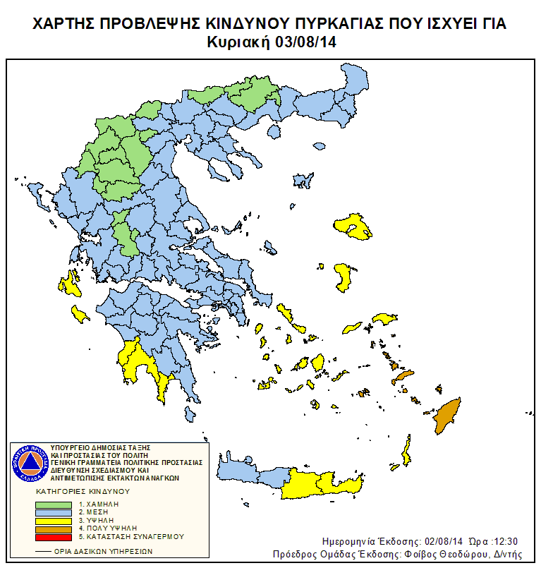 Ημερήσιος Χάρτης Πρόβλεψης Κινδύνου Πυρκαγιάς 02/08/2014