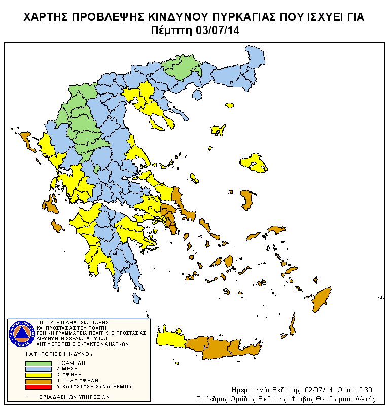 Ημερήσιος Χάρτης Πρόβλεψης Κινδύνου Πυρκαγιάς 03/07/2014