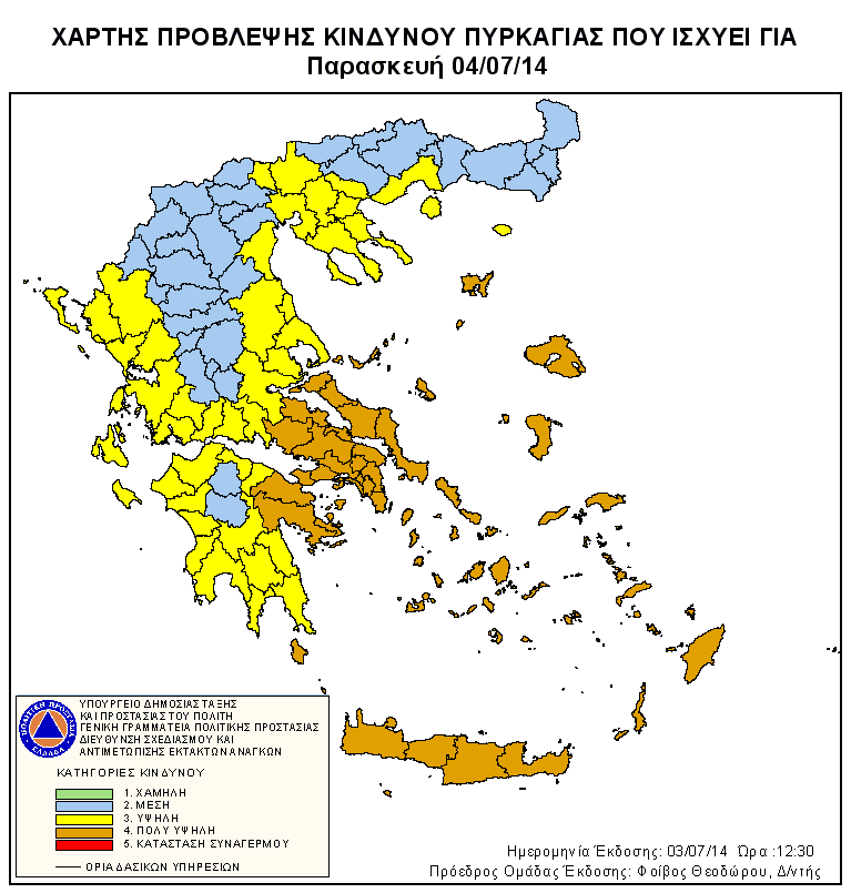 Ημερήσιος Χάρτης Πρόβλεψης Κινδύνου Πυρκαγιάς 04/07/2014