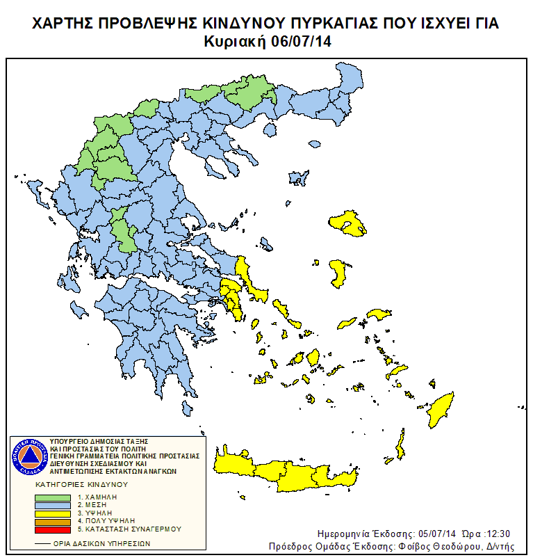 Ημερήσιος Χάρτης Πρόβλεψης Κινδύνου Πυρκαγιάς 05/07/2014