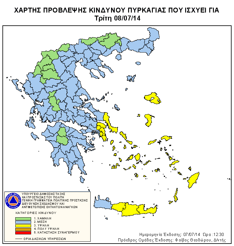Ημερήσιος Χάρτης Πρόβλεψης Κινδύνου Πυρκαγιάς 08/07/2014