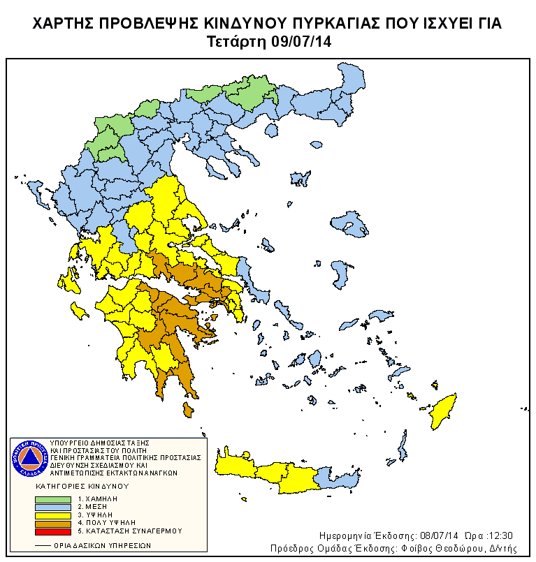 Ημερήσιος Χάρτης Πρόβλεψης Κινδύνου Πυρκαγιάς 09/07/2014