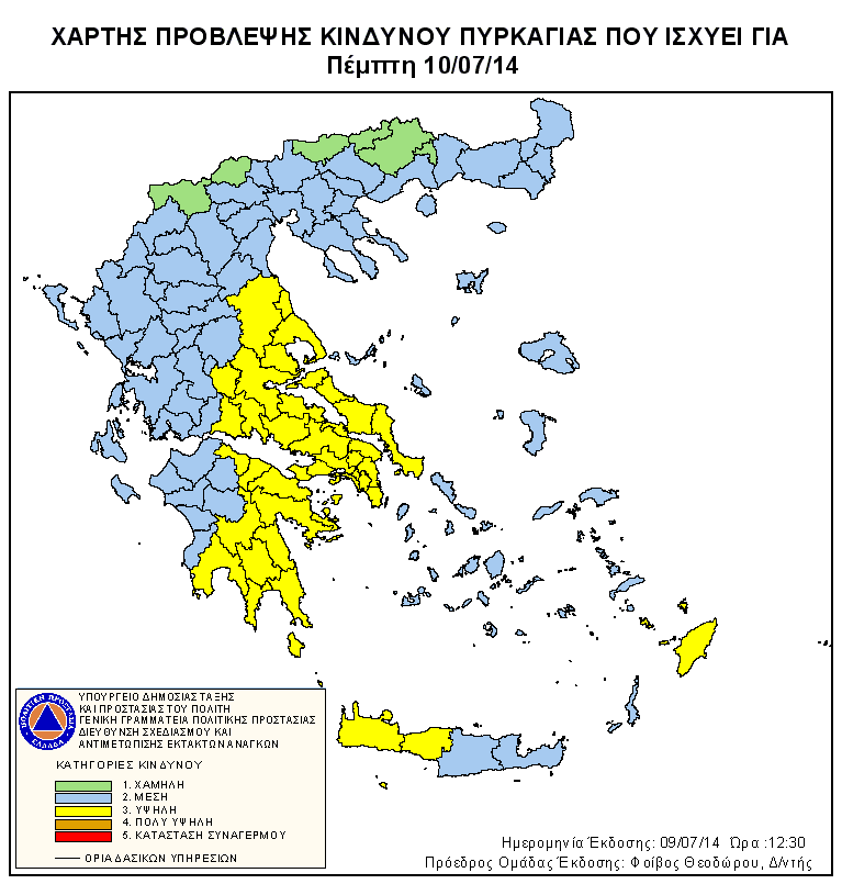 Ημερήσιος Χάρτης Πρόβλεψης Κινδύνου Πυρκαγιάς 10/07/2014