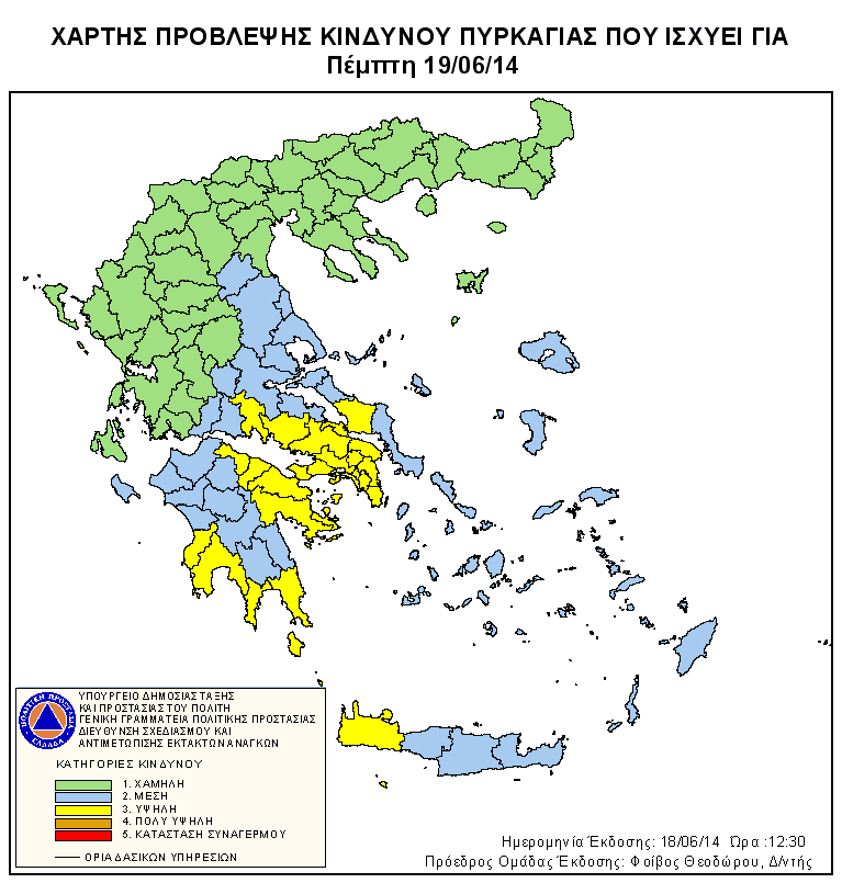 Ημερήσιος Χάρτης Πρόβλεψης Κινδύνου Πυρκαγιάς 19/06/2014