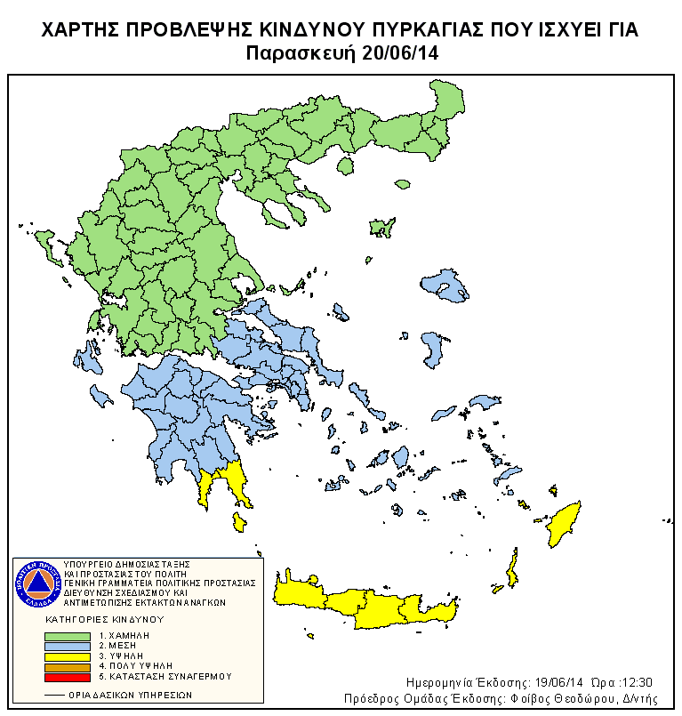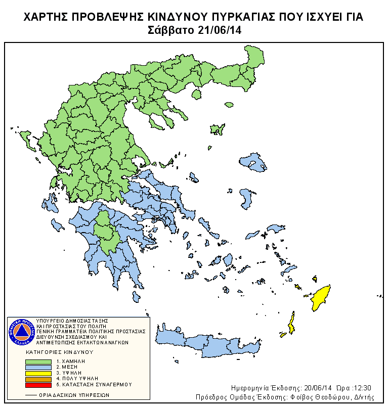 Ημερήσιος Χάρτης Πρόβλεψης Κινδύνου Πυρκαγιάς 20/06/2014