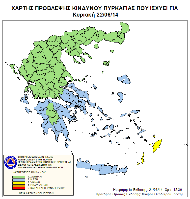 Ημερήσιος Χάρτης Πρόβλεψης Κινδύνου Πυρκαγιάς 22/06/2014