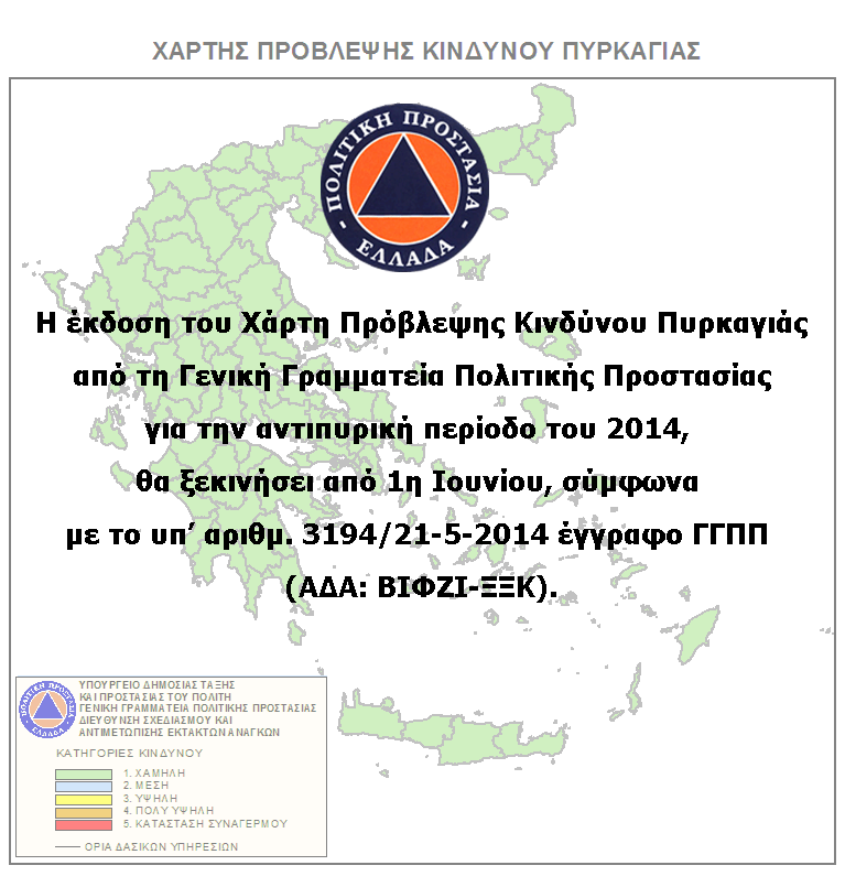 Ημερήσιος Χάρτης Πρόβλεψης Κινδύνου Πυρκαγιάς 30/05/2014