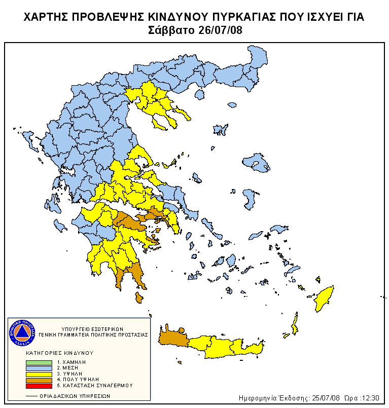 Ημερήσιος Χάρτης Πρόβλεψης Κινδύνου Πυρκαγιάς 26/07/2008