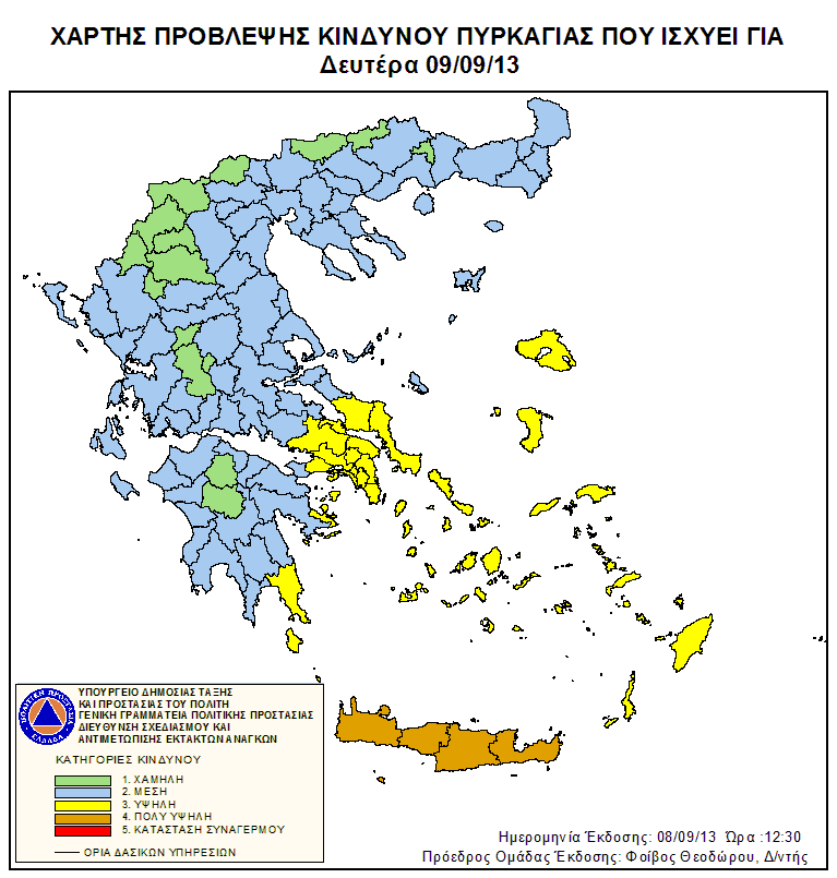 Ημερήσιος Χάρτης Πρόβλεψης Κινδύνου Πυρκαγιάς 09/09/2013