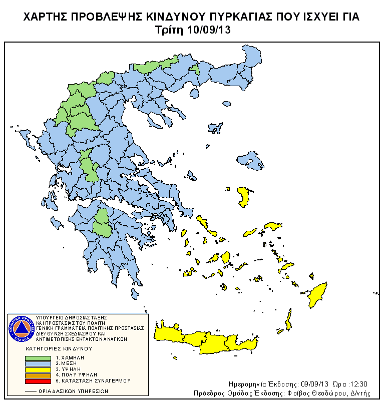 Ημερήσιος Χάρτης Πρόβλεψης Κινδύνου Πυρκαγιάς 10/09/2013