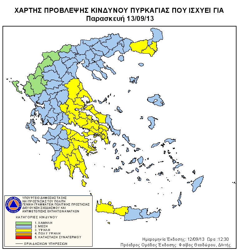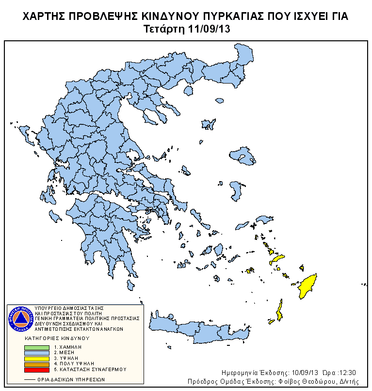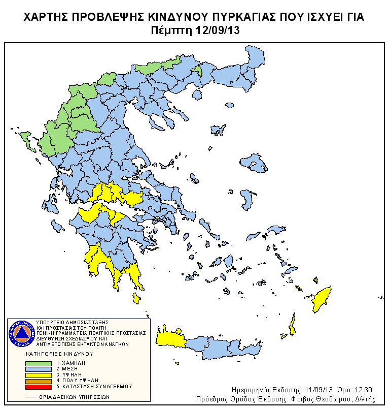 Ημερήσιος Χάρτης Πρόβλεψης Κινδύνου Πυρκαγιάς 12/09/2013