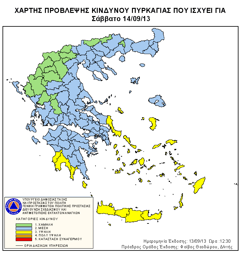 Ημερήσιος Χάρτης Πρόβλεψης Κινδύνου Πυρκαγιάς 14/09/2013
