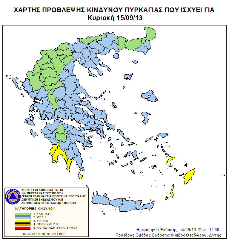Ημερήσιος Χάρτης Πρόβλεψης Κινδύνου Πυρκαγιάς 15/09/2013
