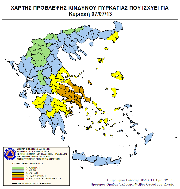 Ημερήσιος Χάρτης Πρόβλεψης Κινδύνου Πυρκαγιάς 07/07/2013