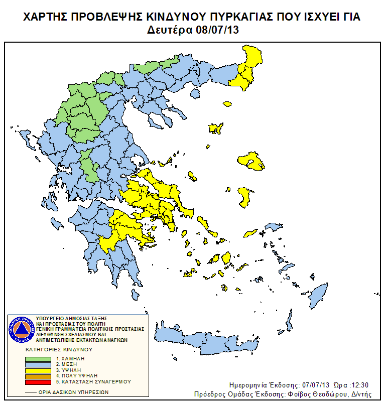 Ημερήσιος Χάρτης Πρόβλεψης Κινδύνου Πυρκαγιάς 08/07/2013