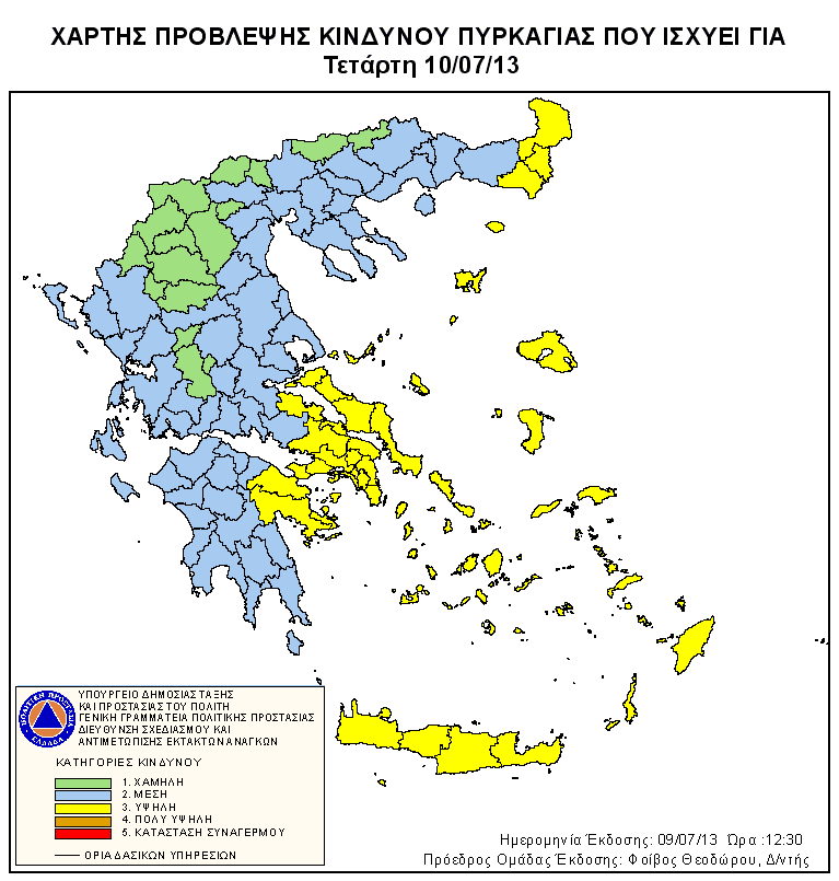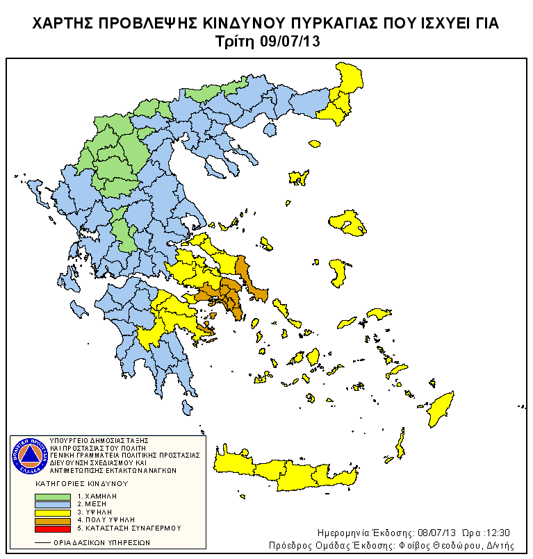 Ημερήσιος Χάρτης Πρόβλεψης Κινδύνου Πυρκαγιάς 09/07/2013