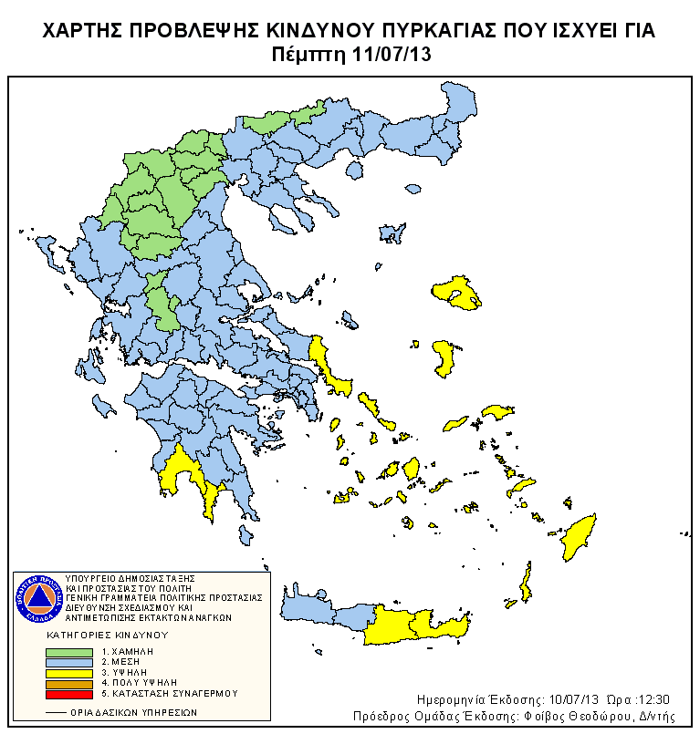 Ημερήσιος Χάρτης Πρόβλεψης Κινδύνου Πυρκαγιάς 10/07/2013