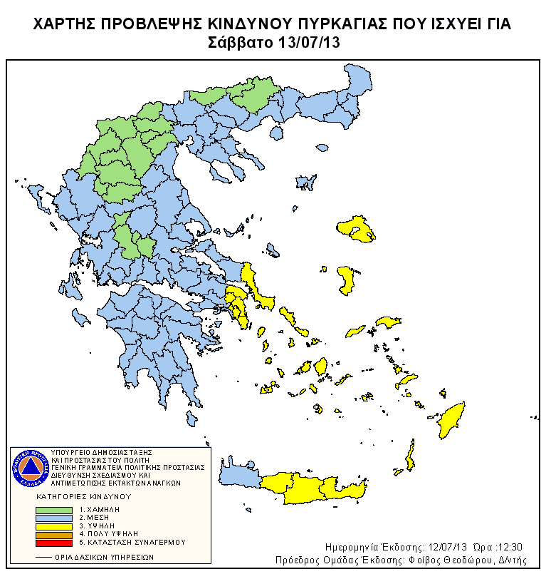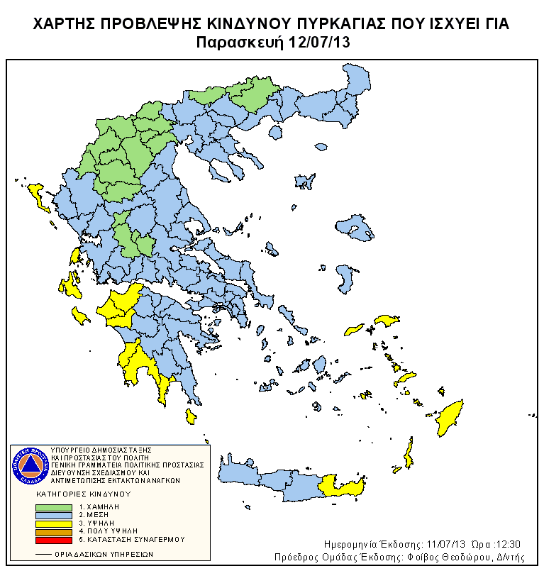 Ημερήσιος Χάρτης Πρόβλεψης Κινδύνου Πυρκαγιάς 12/07/2013