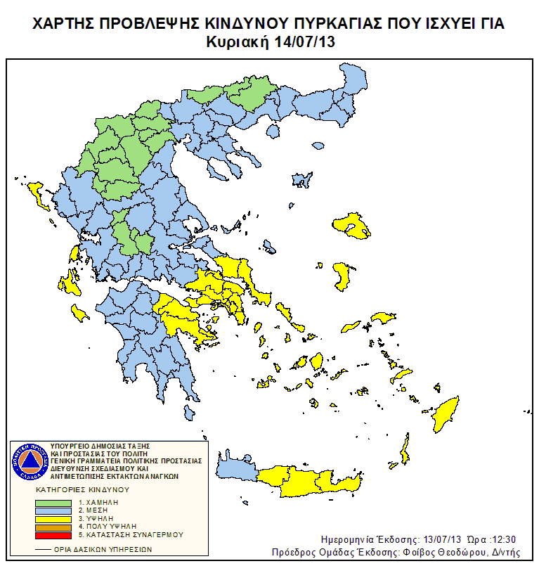 Ημερήσιος Χάρτης Πρόβλεψης Κινδύνου Πυρκαγιάς 13/07/2013