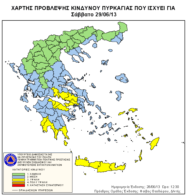 Ημερήσιος Χάρτης Πρόβλεψης Κινδύνου Πυρκαγιάς 29/06/2013