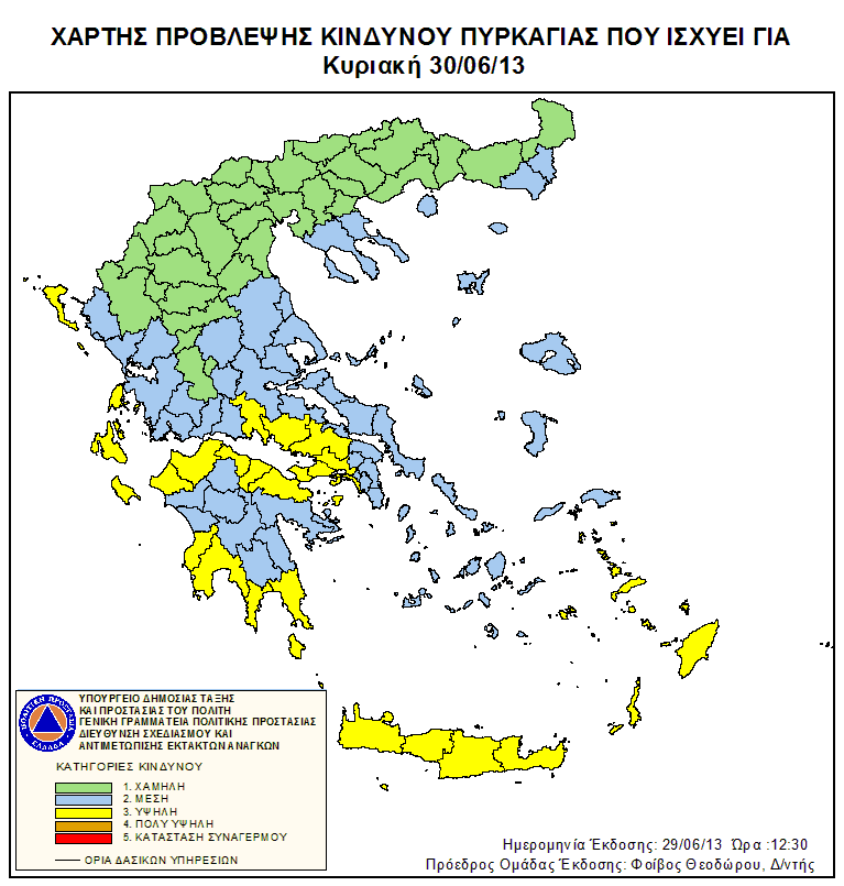 Ημερήσιος Χάρτης Πρόβλεψης Κινδύνου Πυρκαγιάς 30/06/2013