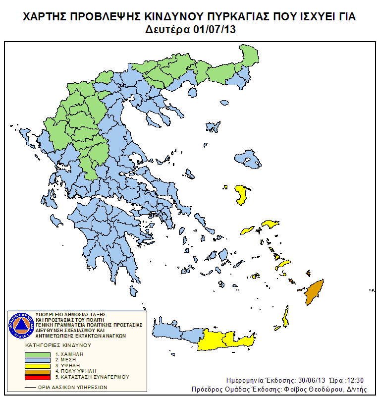 Ημερήσιος Χάρτης Πρόβλεψης Κινδύνου Πυρκαγιάς 01/07/2013