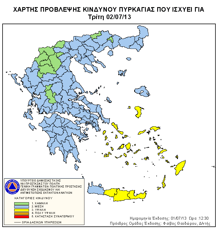 Ημερήσιος Χάρτης Πρόβλεψης Κινδύνου Πυρκαγιάς 02/07/2013