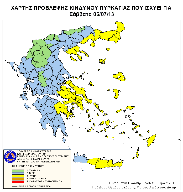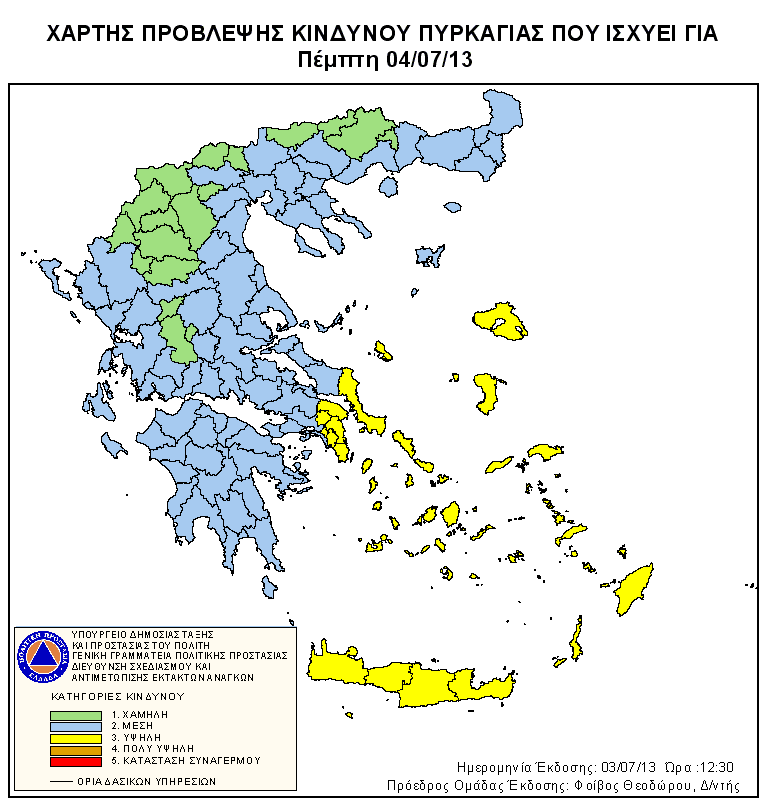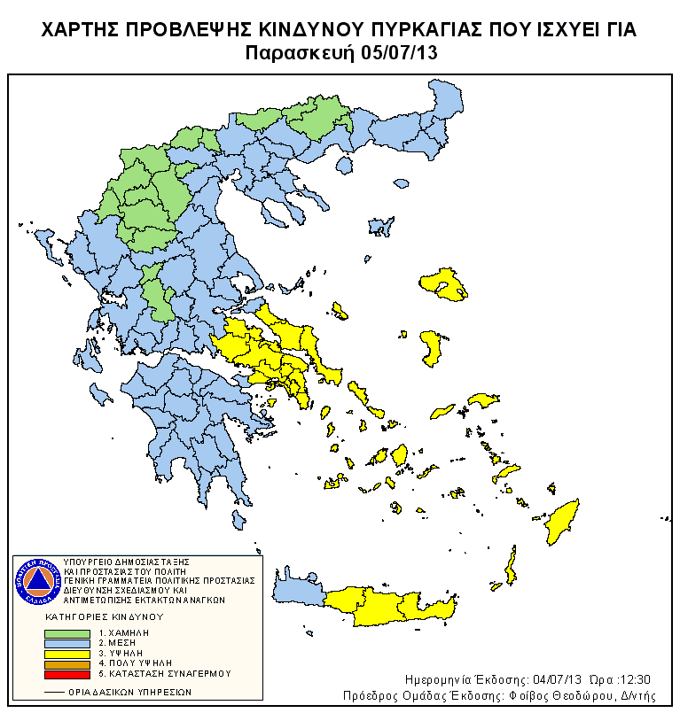 Ημερήσιος Χάρτης Πρόβλεψης Κινδύνου Πυρκαγιάς 05/07/2013