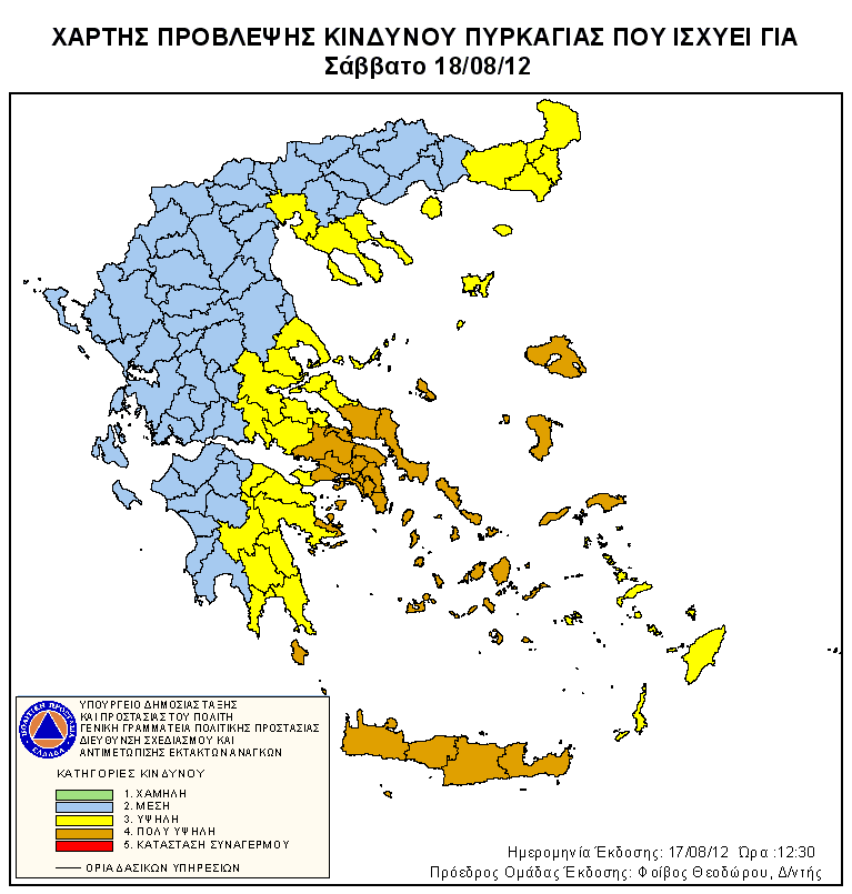 Ημερήσιος Χάρτης Πρόβλεψης Κινδύνου Πυρκαγιάς 17/08/2012
