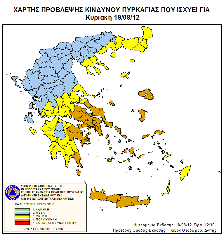 Ημερήσιος Χάρτης Πρόβλεψης Κινδύνου Πυρκαγιάς 19/08/2012